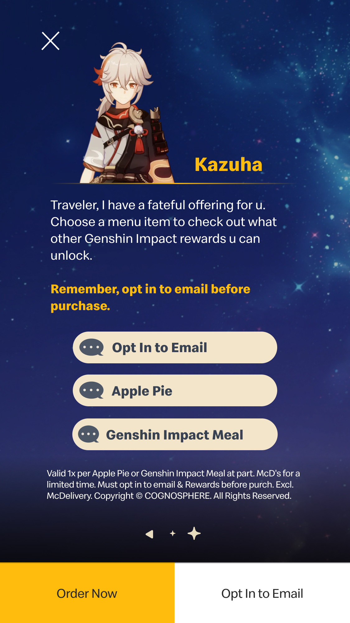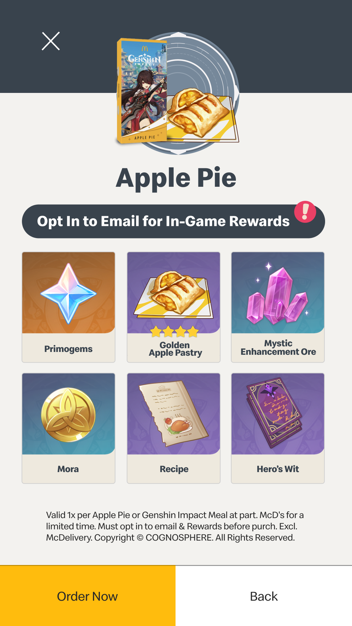 PH: unlock exclusive rewards with an Apple Pie or Genshin Impact Meal.